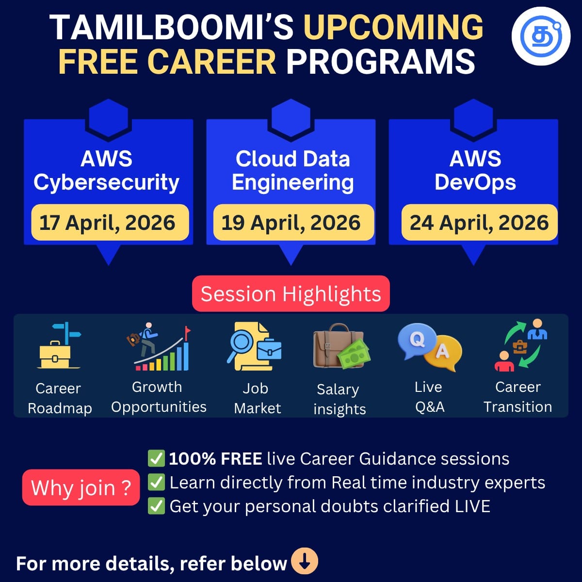 The technology job market is evolving rapidly, and choosing the right career path can be challenging. To help learners and professionals understand emerging opportunities, Tamilboomi Technologies is hosting a series of free introductory career sessions this month.